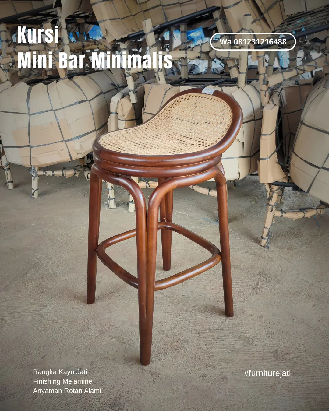 Menciptakan suasana bar atau area dapur yang nyaman dimulai dari pemilihan kursi yang tepat. Kursi bar kayu unik ini hadir untuk Anda yang bosan dengan desain masif yang terlihat kaku. Dengan menggabungkan material Kayu Jati yang terkenal sangat kokoh dan Anyaman Rotan Alami pada bagian dudukan, kursi ini bukan sekadar tempat duduk, melainkan sebuah karya seni interior.
