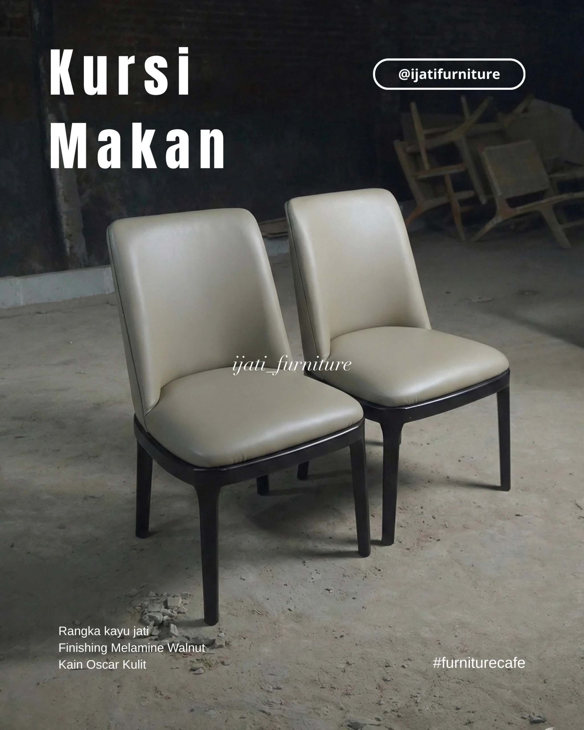 Solusi cerdas untuk furniture restoran dan cafe Anda. Kursi makan dengan rangka kayu jati solid dan balutan kulit sintetis (Oscar) premium yang mewah namun sangat mudah perawatannya. Tahan air dan mudah dibersihkan.