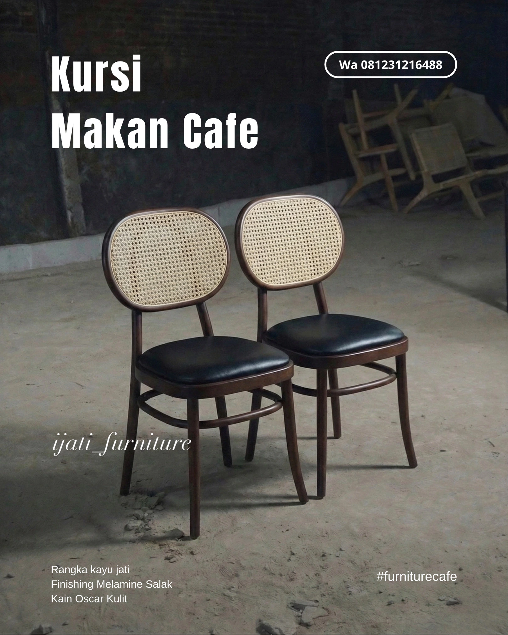 Kursi Makan Cafe Aesthetic Rangka Jati – Finishing Salak & Dudukan Empuk