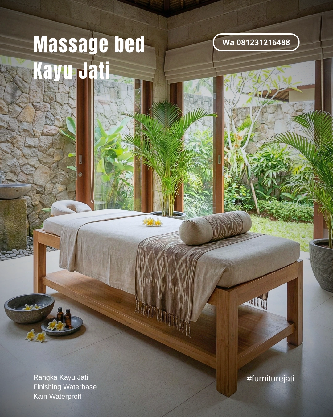 Bawa aura ketenangan pantai dan hutan Ubud ke dalam ruangan Anda. Ranjang spa ini adalah pilihan utama bagi pemilik usaha yang mengutamakan kualitas jangka panjang dan visual yang memukau.
